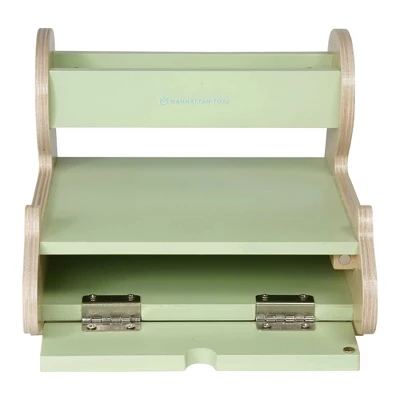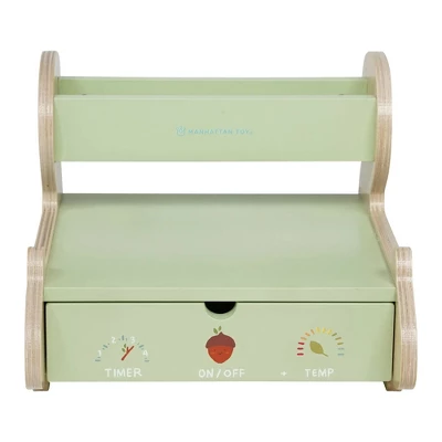 There’s no shortage of pizza playtime with this squirrel-themed pizza oven. This wooded kitchen playset includes 1 oven, 4 felt pizza slices, 24 felt pizza toppings (4 each of: red sauce and cheese wedges, mushroom slices, anchovies, pepperoni slices, olive slices, tomato slices), 1 wood paddle, and 1 wood pizza cutter with a wheel that spins. Magnetized oven door stays closed until the pies are ready to enjoy and features a printed-on timer, on/off switch, and temperature graphics. The elevated compartment offers storage for toppings. Kids will enjoy making pizza creations while engaging in imaginative thinking, role play, solitary or associative play, hand-eye coordination and motor skill development. Since 1978, Manhattan Toy has been making award-winning, high quality, educational toys for your baby, toddler or kid. From baby toys and toddler toys to wooden toys and activity centers, our goal is to provide the safest and best toys available. All of our products, from the newest concepts to our time-tested classics, are innovatively designed to inspire imaginative play..